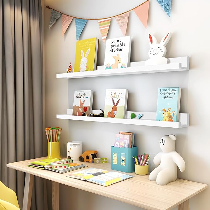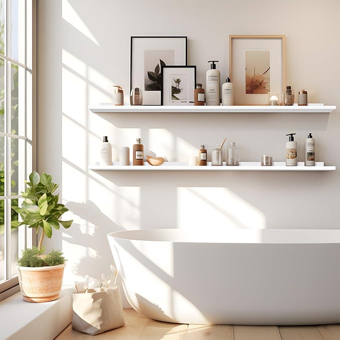 - Stylish and Practical Design: LaVie Home white floating shelves set boasts a stylish and practical design, set of 4 shelves of uniform size measuring 35.4 x 5.1 x 1.8 inches. This carefully chosen size seamlessly integrates into various interior spaces, providing an ideal platform for displaying cherished collectibles, photos, books, plants, and small décor items